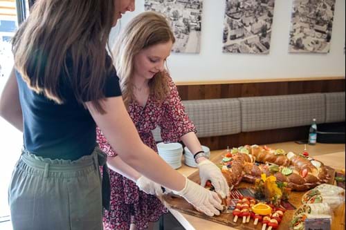 Zum Abschluss wurden Süßes und Kaffee serviert. Die dritte Bürgermeisterin der Stadt Deggendorf Renate Wasmeier, eröffnete das Kuchenbuffet und verteilte die Leckereien gemeinsam mit Ulrike Schrettenbrunner von Protek e.V..