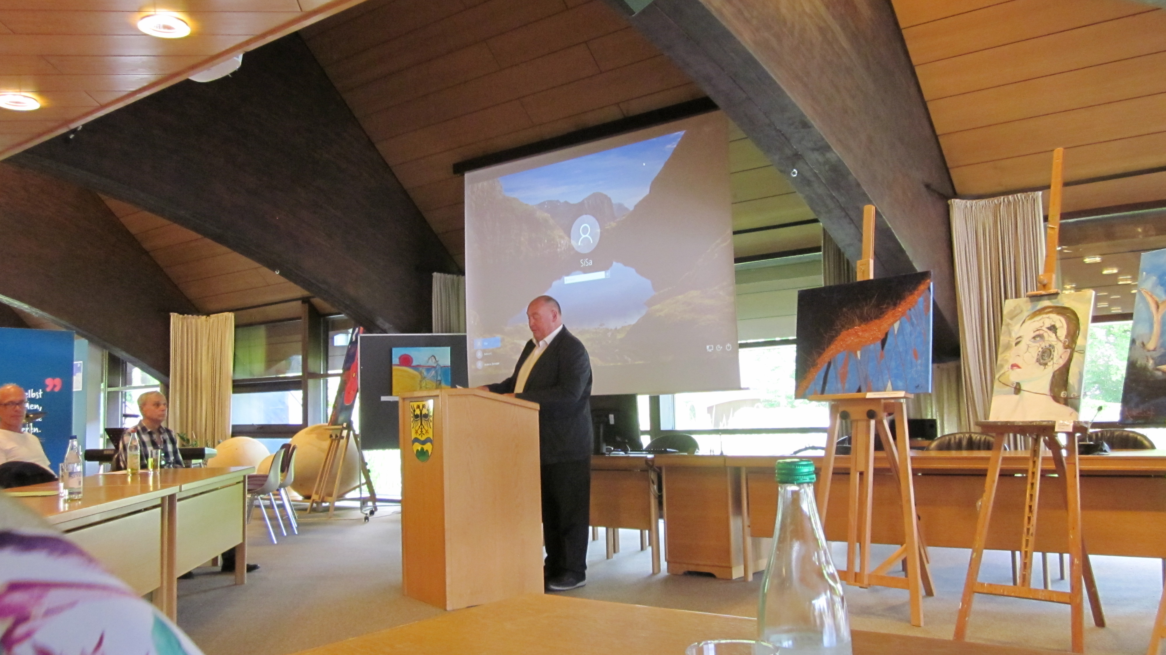 Vor einem großen Auditorium im Sitzungssaal des Landratsamtes Deggendorf eröffnete der stellvertretende Landrat Herr Färber und Herr Richters feierlich die Kunstaustellungen lokaler Künstler und die LebensBilderReise. Dass Kunst den Staub des Alltags von der Seele wäscht ist nicht nur ein Zitat von Pablo Picasso, sondern trifft auf beeindruckende Arte und Weise auf die Ausstellungen zu. Denn die Skulpturen, Bilder und Arbeiten der Künstler aus der Region berichten von Gefühlen, Erlebnissen, aber auch von Schicksalen. Hinter jedem einzelnen Werk steckt eine Geschichte, eine Lebenswelt, ein Mensch!