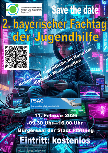 Bitte merken Sie sich den Termin schon jetzt vor! Anmeldung unter: https://psag.landkreis-deggendorf.de/psag/anmeldung-zum-2-bayerischen-fachtag-der-jugendhilfe/