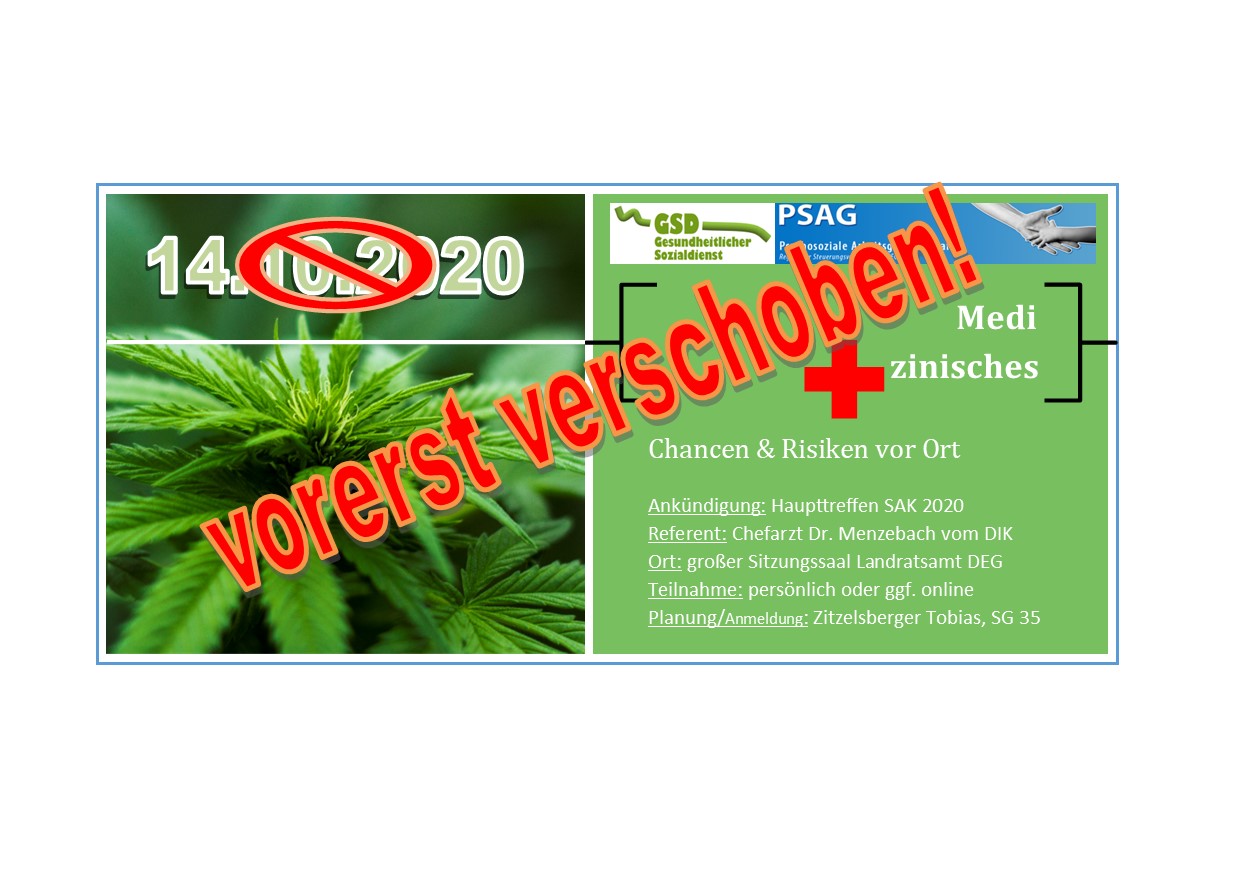 Der zweite Anlauf zur Durchführung der Jahreshauptversammlung des Suchtarbeitskreises Deggendorf/Regen muss aus organisatorischen und personellen Gründen erneut verschoben werden!